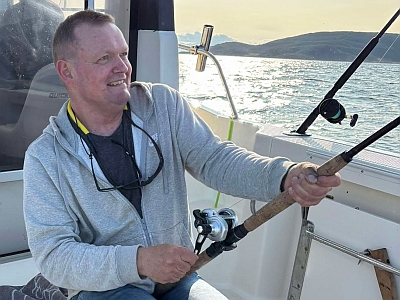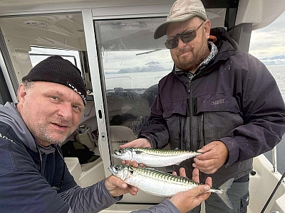 I båd 8 tog Jan, Kim og Morten en tur ud i det urolige vejr. Jan fik dagens største makrel på 43 cm, mens Morten sluttede af med en solid helleflynder på 27 kilo.