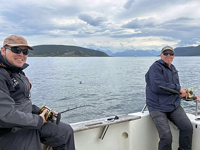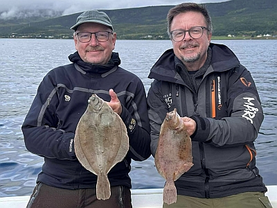 Det gav resultat: Finn landede en flot helleflynder på 103 cm, mens Jens styrede båden fri af land under fighten. Senere på dagen fik Kenneth hug ved den velkendte "hestesko" og landede en kulsort helleflynder på 80 cm, som blev nænsomt genudsat.