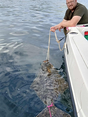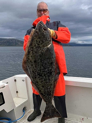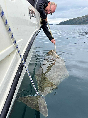 Skipper havde spået at det var en madfisk – men krystalkuglen skulle nok have været pudset. Efter en intens kamp kunne fisken sikres ved bådsiden, måles og fotograferes, inden den blev genudsat. Med en anslået vægt på 56,7 kilo blev den ugens største helleflynder.